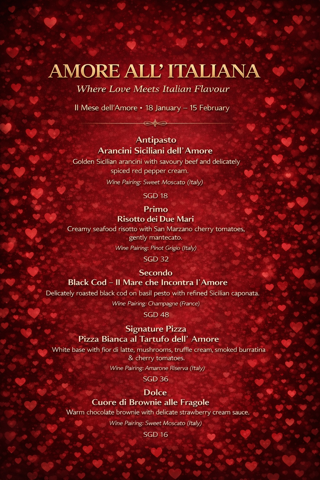 Caffe Italia brings the authentic flavors of Italy to the heart of Singapore. Our passion for Italian cuisine drives us to create dishes that are both classic and innovative. Using only the freshest ingredients, we strive to deliver an unforgettable dining experience that transports you to the charming streets of Italy.